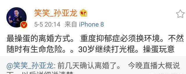 1. 笑笑发微博声称离婚,离婚原因是因为妻子慧慧由于网络暴力产生了抑郁症,而且这次已经是抑郁症复发,严重到要自杀的程度,只有离婚才能解决这件事。