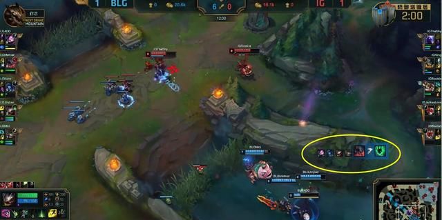 这一盘比赛 BLG 是彻底拼了,连大嘴都拿了出来,就为了针对阿水的薇恩,而 IG 这边阵容也是符合一贯风格,Rookie 拿出了相对灵活的飞机来防止被针对,总体来说前期 BLG 阵容更强一些,中后期两边也都不弱。6 分钟 Ning 直接偷小龙但是被 BLG 发现,随后三人包夹之下是送掉了一血。